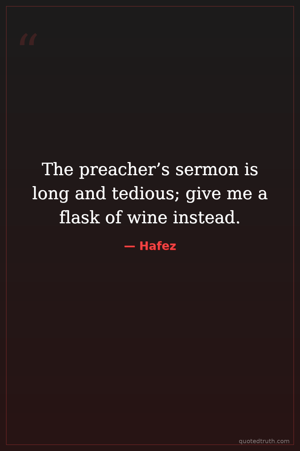 The preacher’s sermon is long and tedious; give me a flask of wine instead.