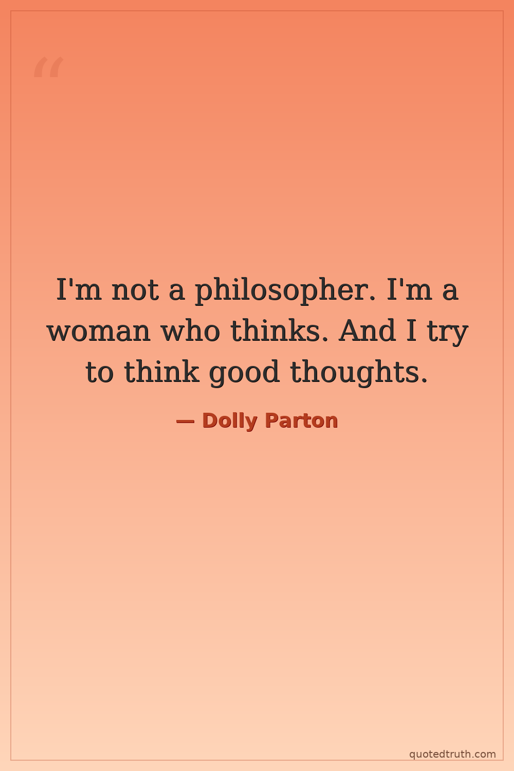 I'm not a philosopher. I'm a woman who thinks. And I try to think good thoughts.