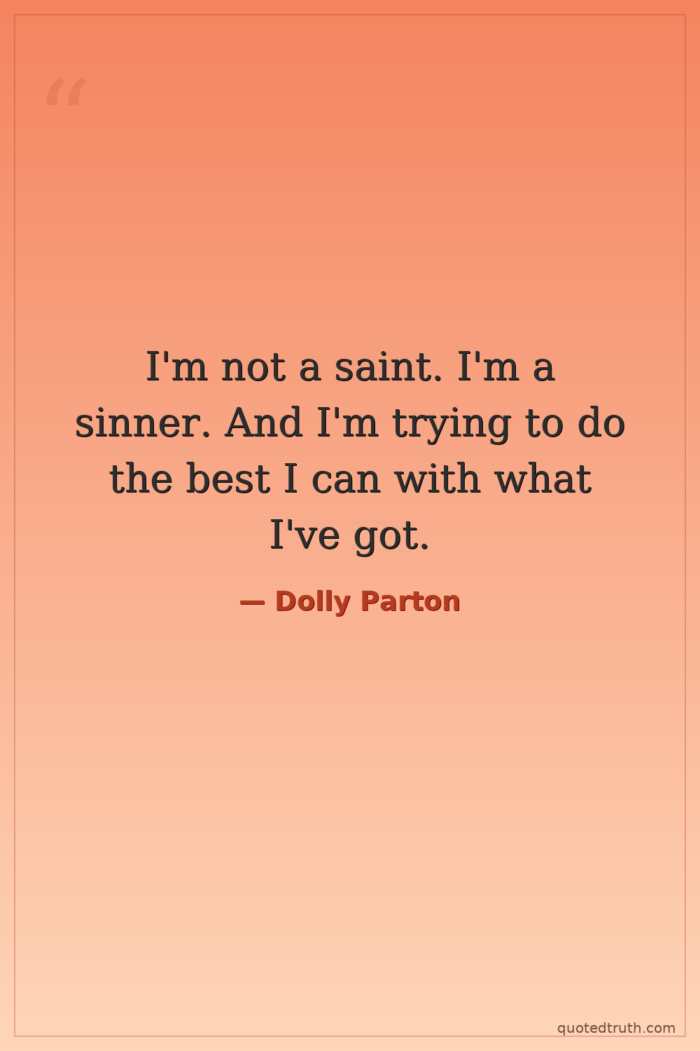 I'm not a saint. I'm a sinner. And I'm trying to do the best I can with what I've got.