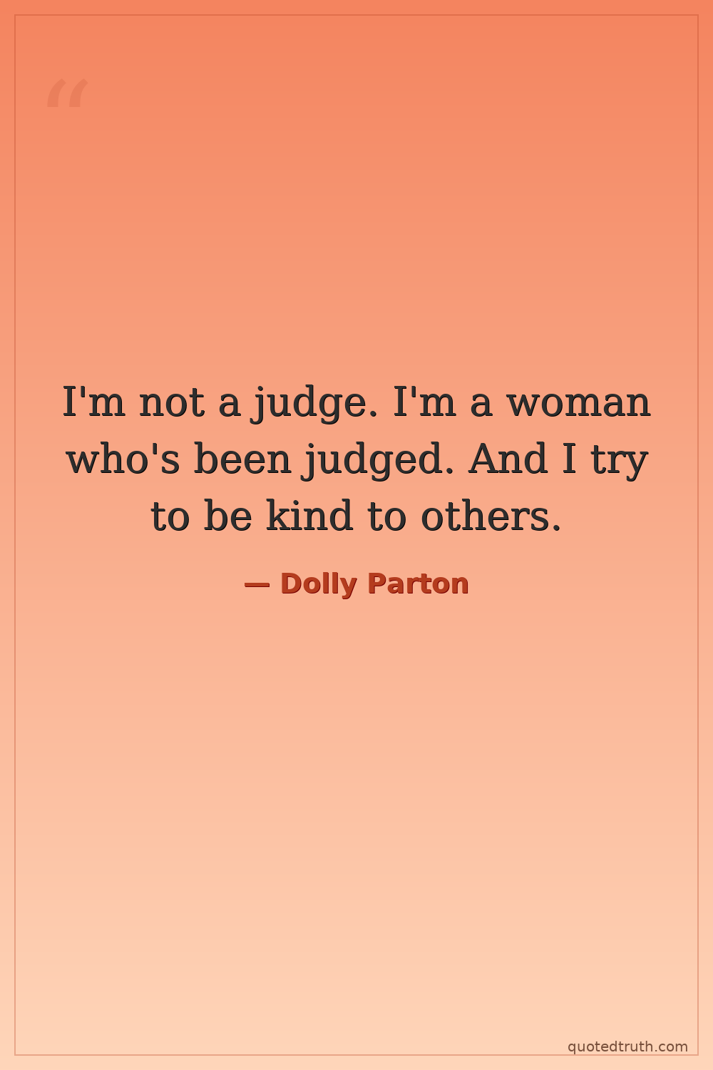 I'm not a judge. I'm a woman who's been judged. And I try to be kind to others.