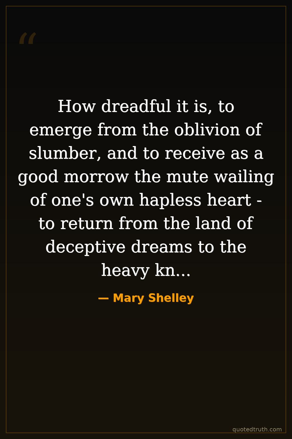 How dreadful it is, to emerge from the oblivion of slumber, and to receive as a good morrow the mute wailing of one's own hapless heart - to return from the land of deceptive dreams to the heavy knowledge of unchanged disaster!