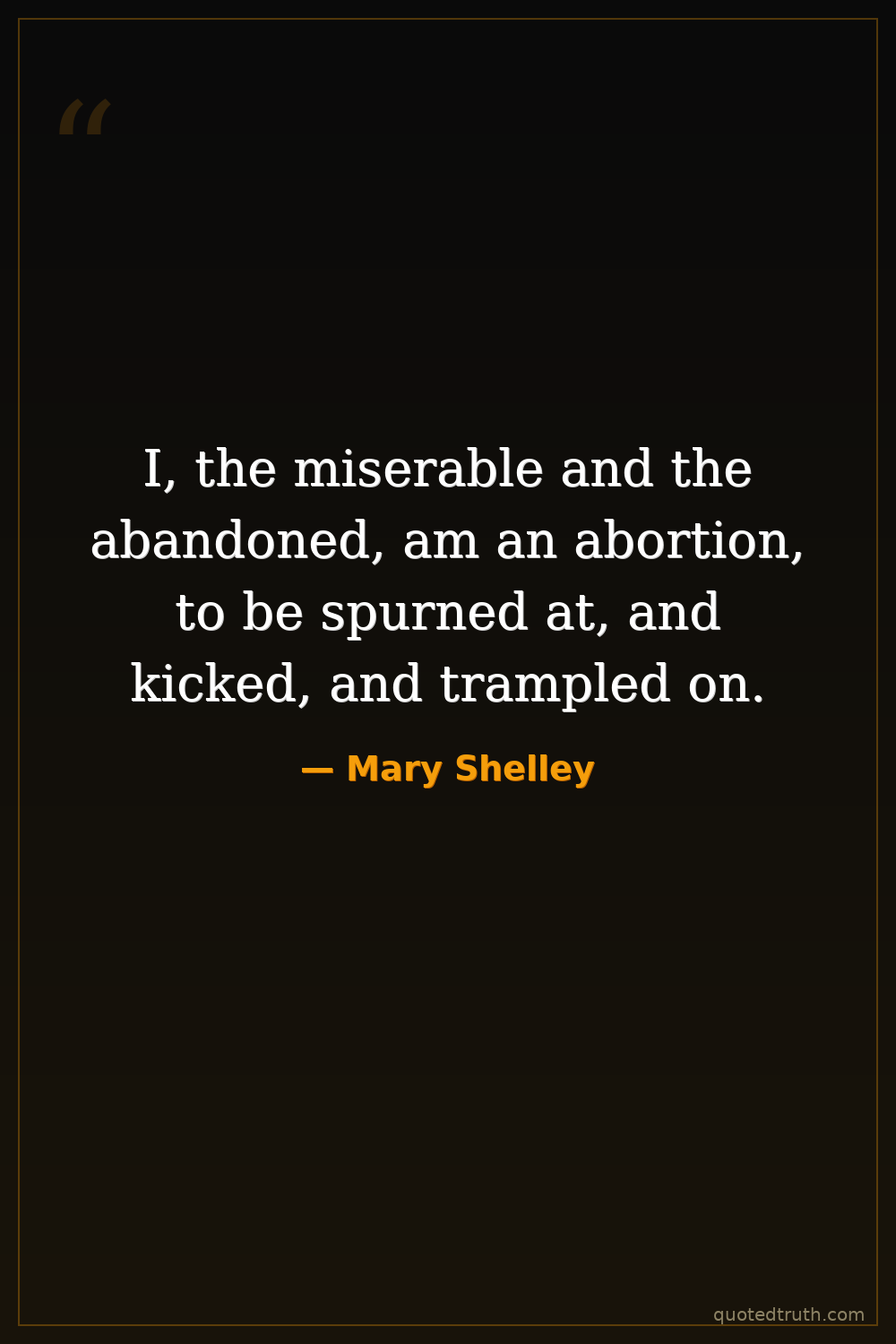 I, the miserable and the abandoned, am an abortion, to be spurned at, and kicked, and trampled on.