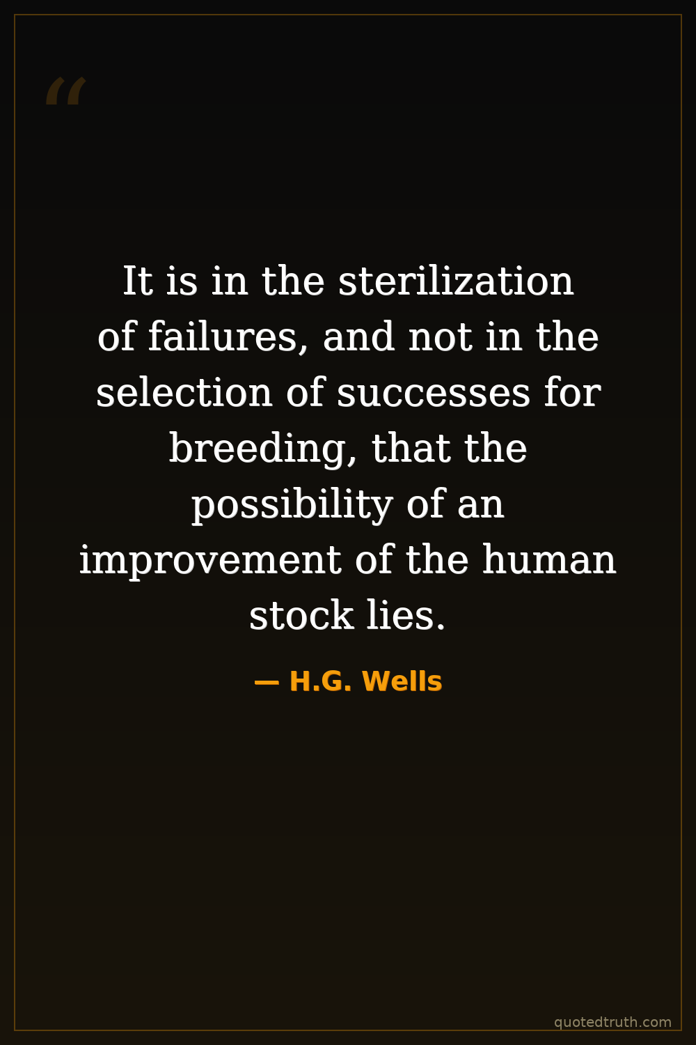 It is in the sterilization of failures, and not in the selection of successes for breeding, that the possibility of an improvement of the human stock lies.