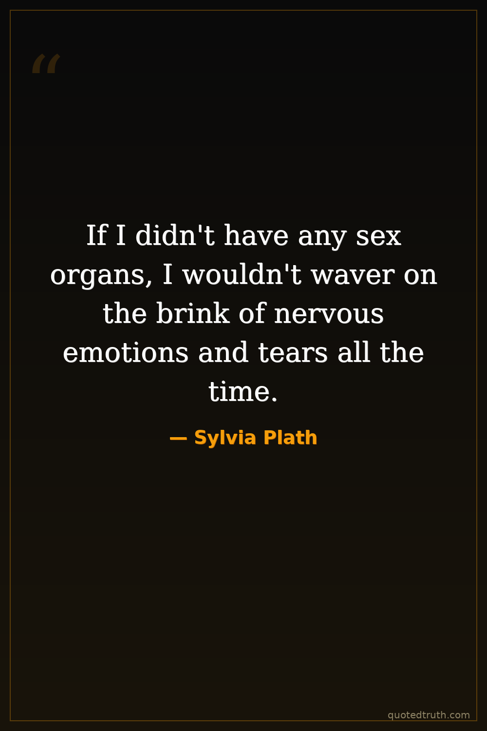 If I didn't have any sex organs, I wouldn't waver on the brink of nervous emotions and tears all the time.