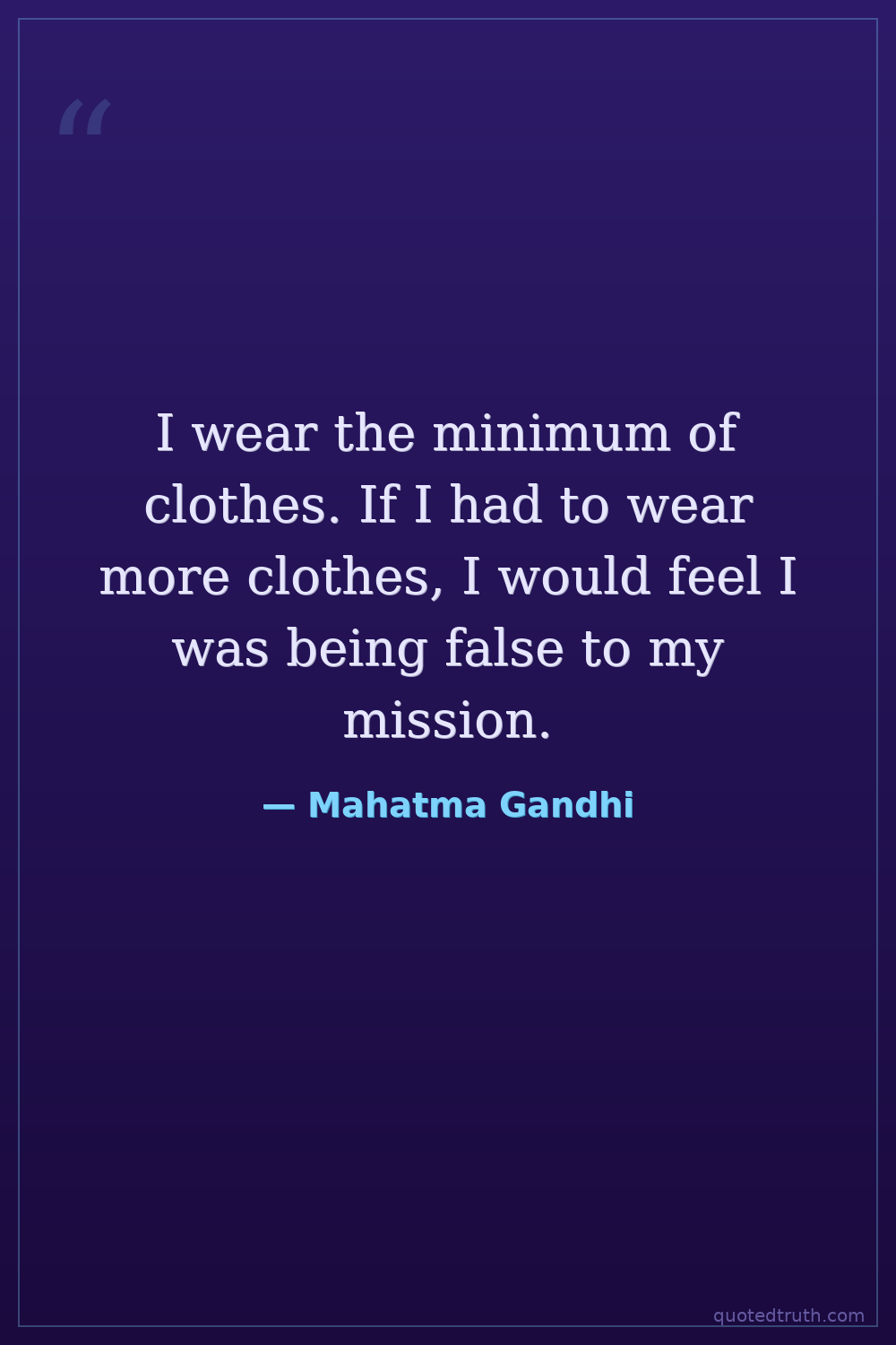 I wear the minimum of clothes. If I had to wear more clothes, I would feel I was being false to my mission.