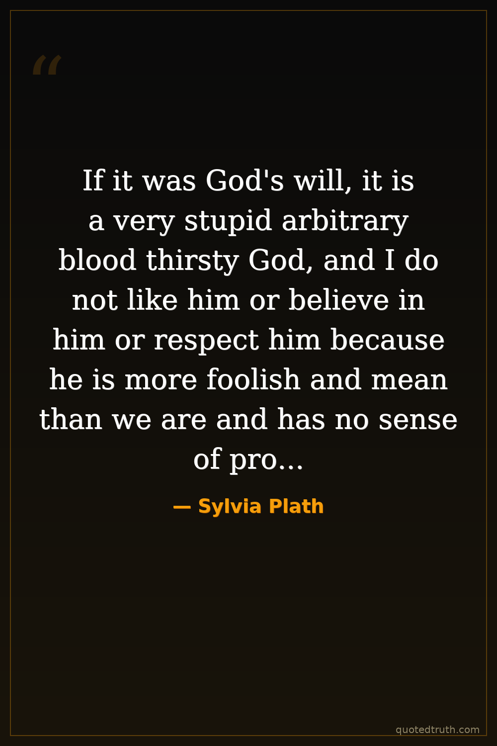 If it was God's will, it is a very stupid arbitrary blood thirsty God, and I do not like him or believe in him or respect him because he is more foolish and mean than we are and has no sense of proportion of what people are good for living and what people are unfit.
