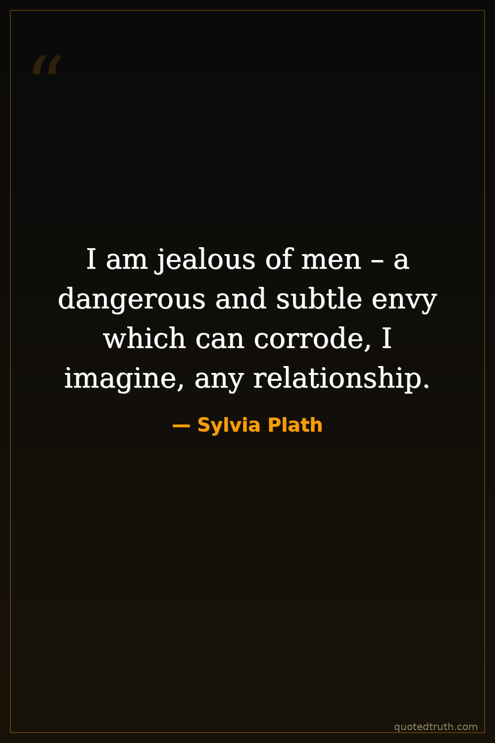 I am jealous of men – a dangerous and subtle envy which can corrode, I imagine, any relationship.