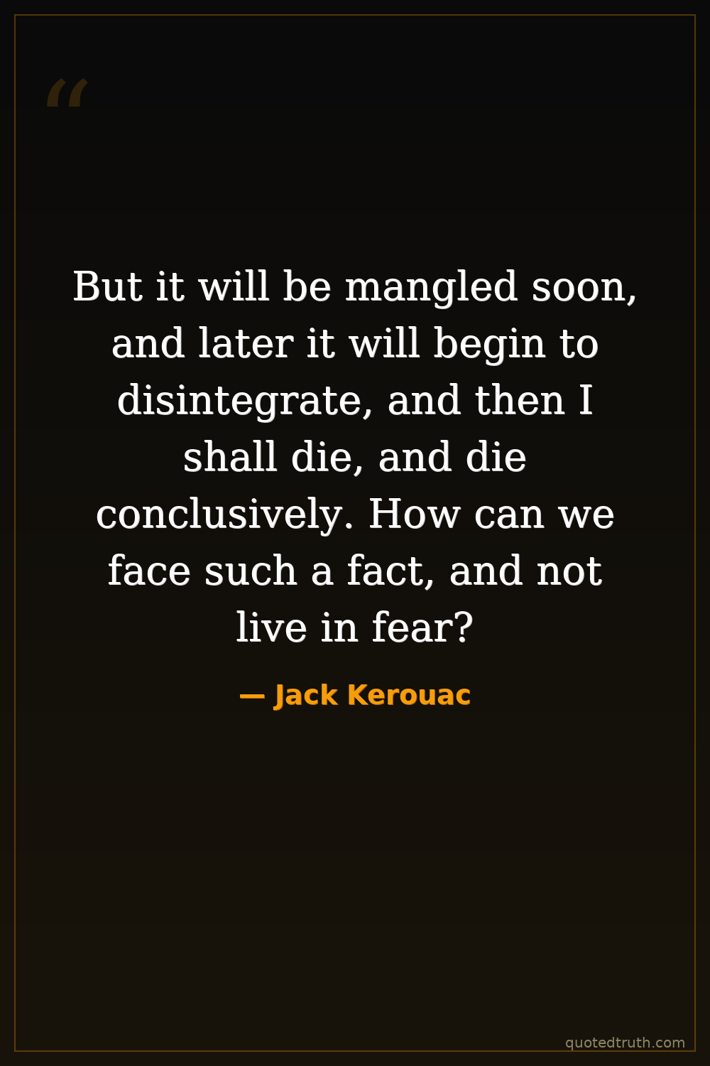 But it will be mangled soon, and later it will begin to disintegrate, and then I shall die, and die conclusively. How can we face such a fact, and not live in fear?