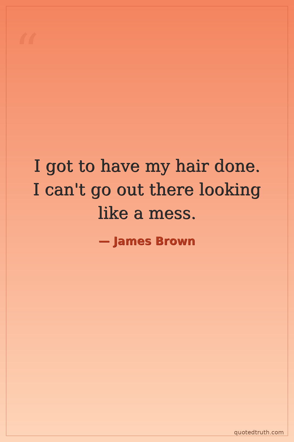 I got to have my hair done. I can't go out there looking like a mess.