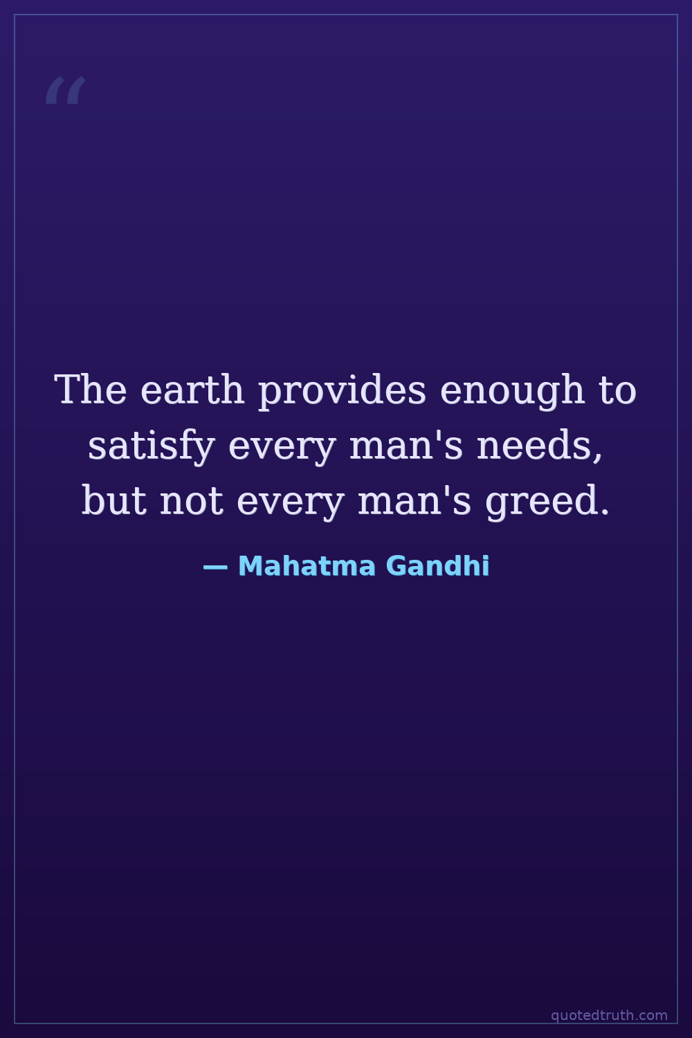 The earth provides enough to satisfy every man's needs, but not every man's greed.