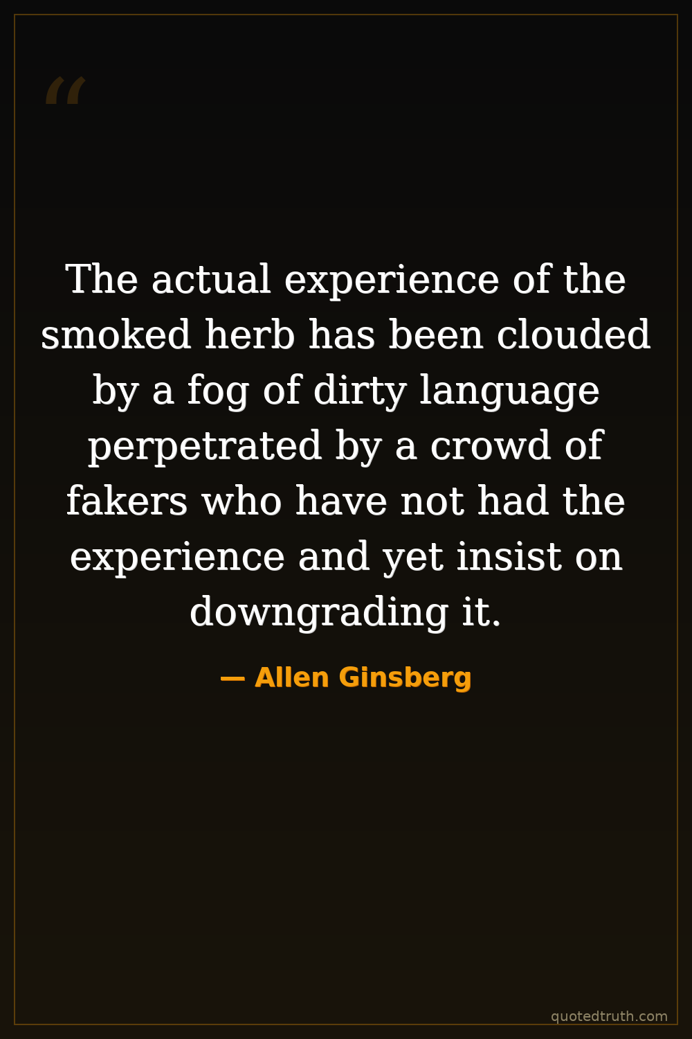 The actual experience of the smoked herb has been clouded by a fog of dirty language perpetrated by a crowd of fakers who have not had the experience and yet insist on downgrading it.