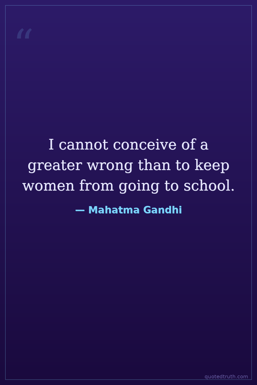 I cannot conceive of a greater wrong than to keep women from going to school.