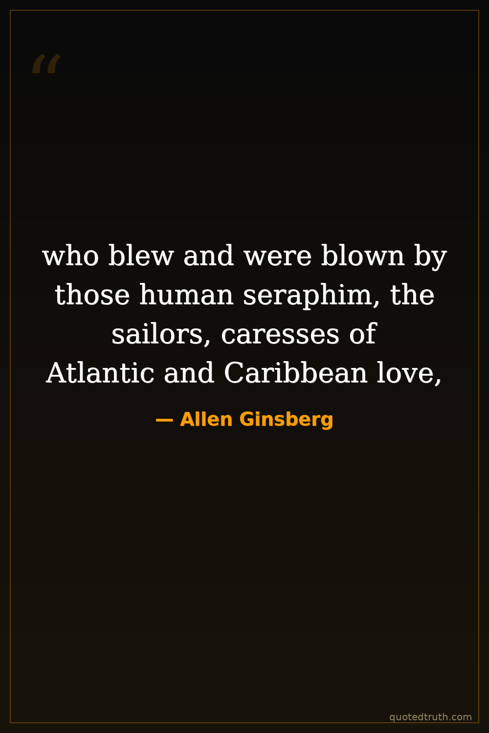 who blew and were blown by those human seraphim, the sailors, caresses of Atlantic and Caribbean love,