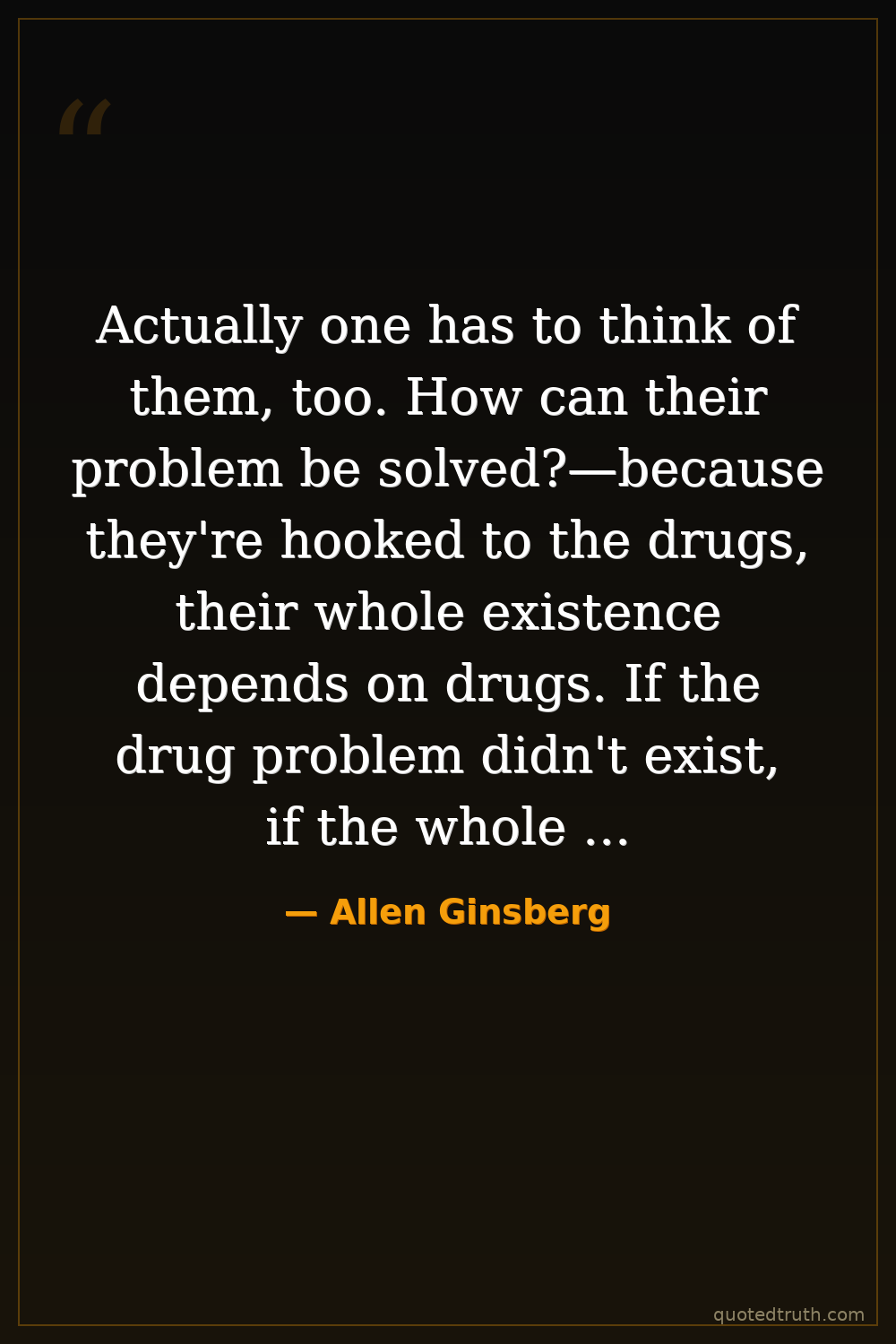 Actually one has to think of them, too. How can their problem be solved?—because they're hooked to the drugs, their whole existence depends on drugs. If the drug problem didn't exist, if the whole problem were solved, they would be left jobless.