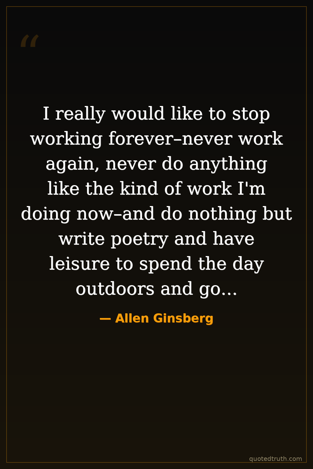 I really would like to stop working forever–never work again, never do anything like the kind of work I'm doing now–and do nothing but write poetry and have leisure to spend the day outdoors and go to museums and see friends. And I'd like to keep living with someone — maybe even a man — and explore relationships that way.