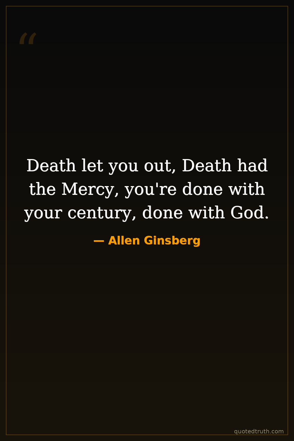 Death let you out, Death had the Mercy, you're done with your century, done with God.