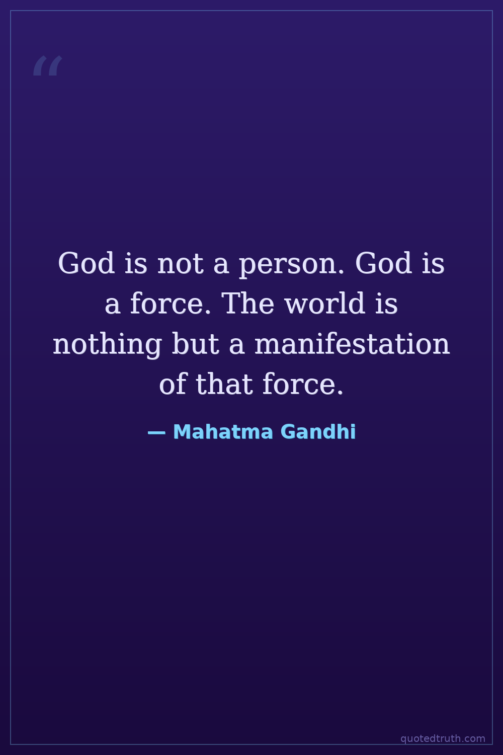 God is not a person. God is a force. The world is nothing but a manifestation of that force.