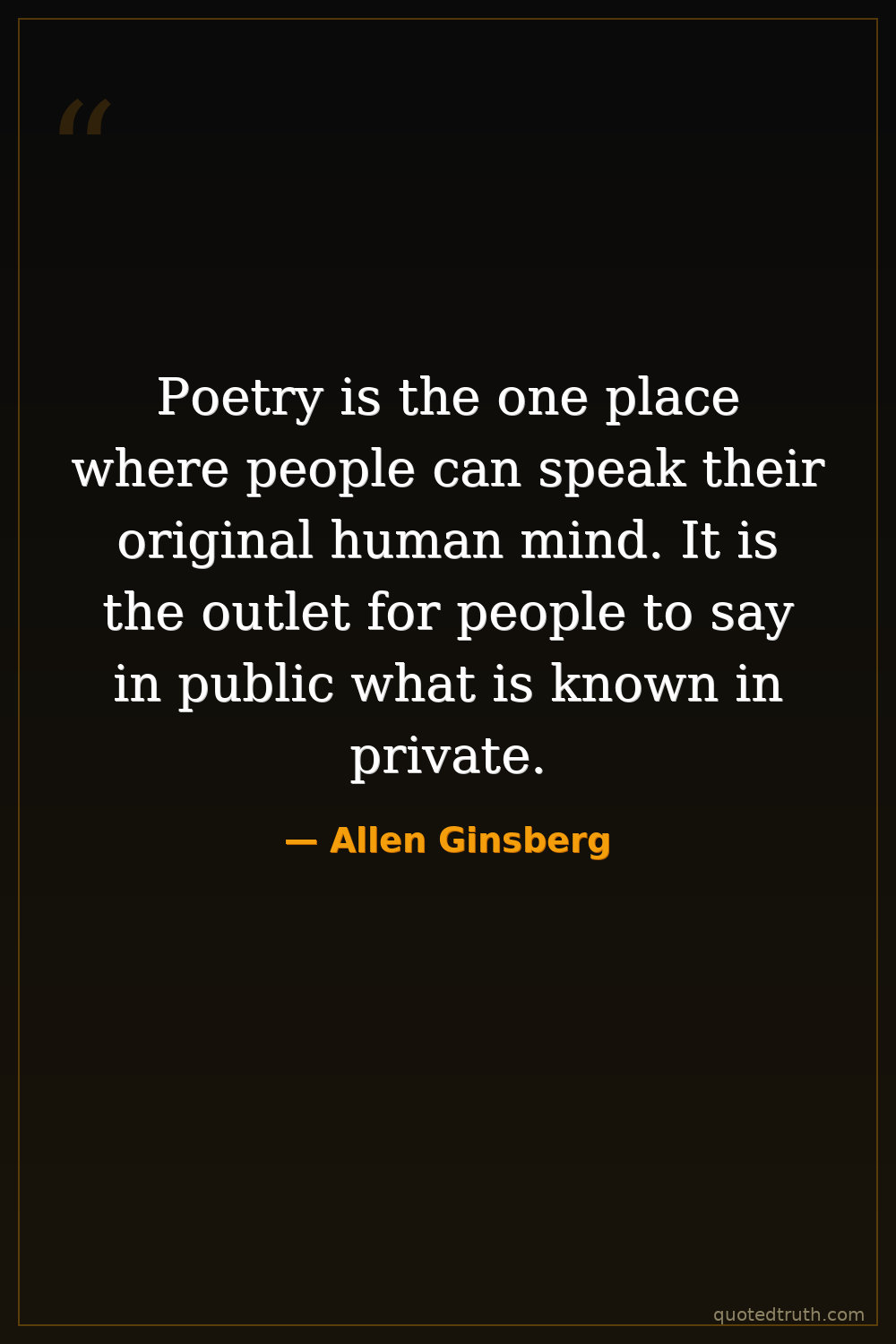 Poetry is the one place where people can speak their original human mind. It is the outlet for people to say in public what is known in private.