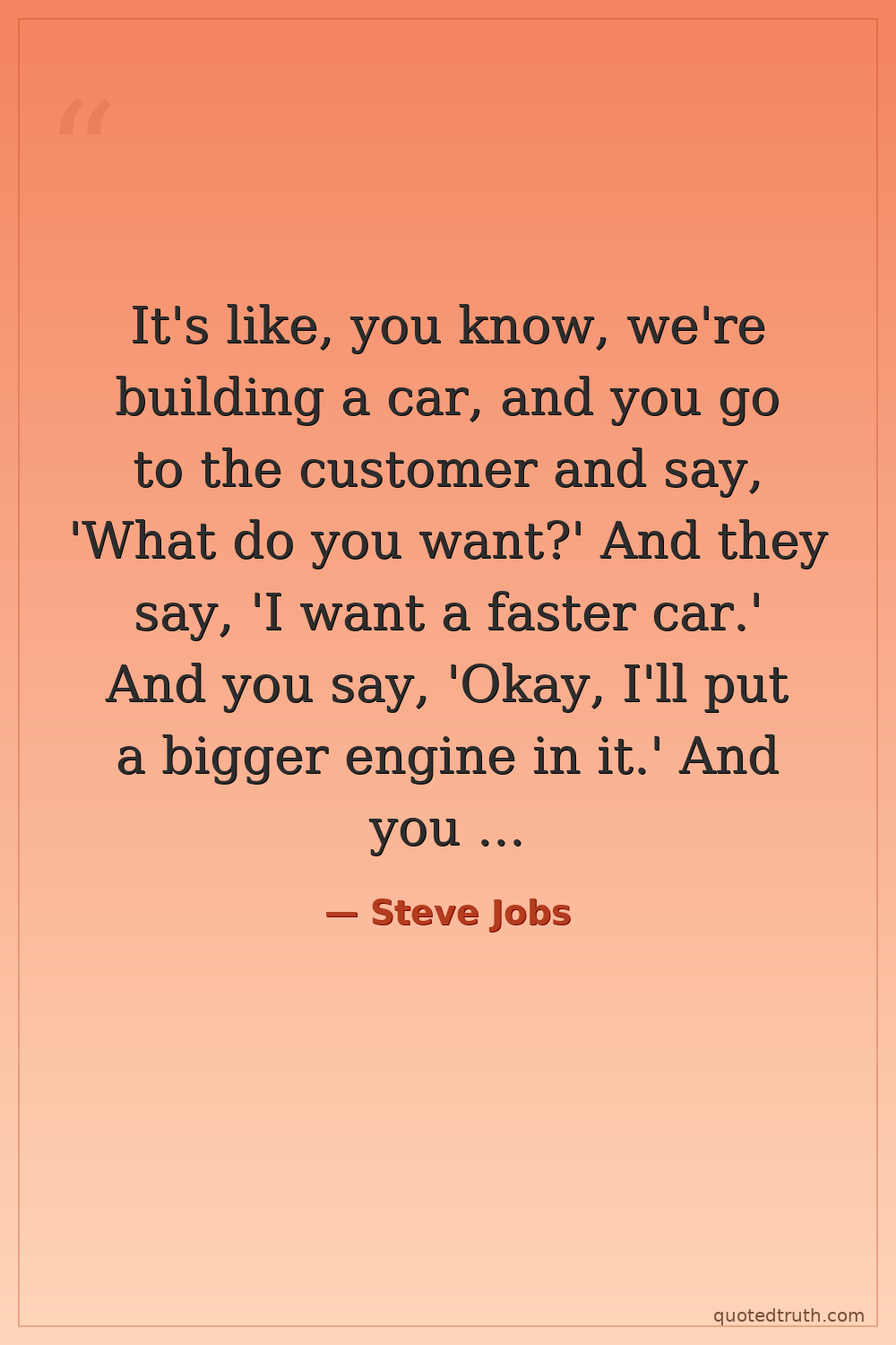 It's like, you know, we're building a car, and you go to the customer and say, 'What do you want?' And they say, 'I want a faster car.' And you say, 'Okay, I'll put a bigger engine in it.' And you put a bigger engine in it, and they're still not happy. They want a faster car.
