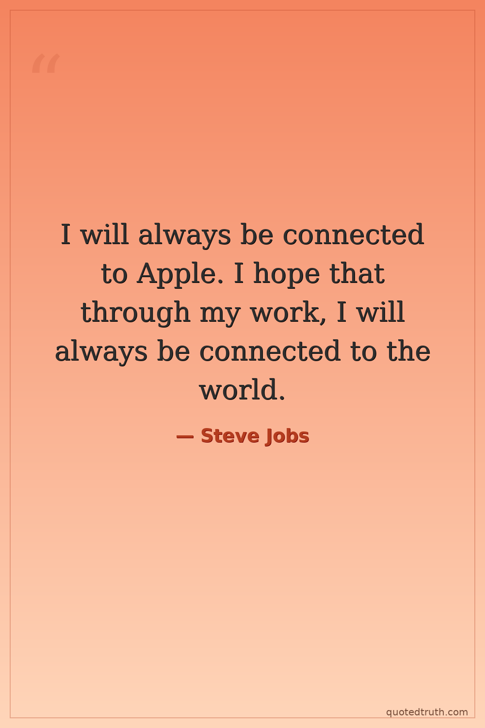 I will always be connected to Apple. I hope that through my work, I will always be connected to the world.
