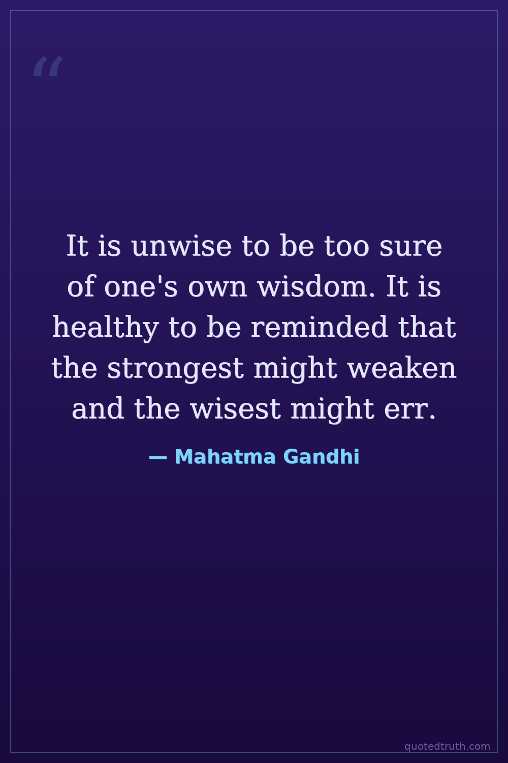It is unwise to be too sure of one's own wisdom. It is healthy to be reminded that the strongest might weaken and the wisest might err.