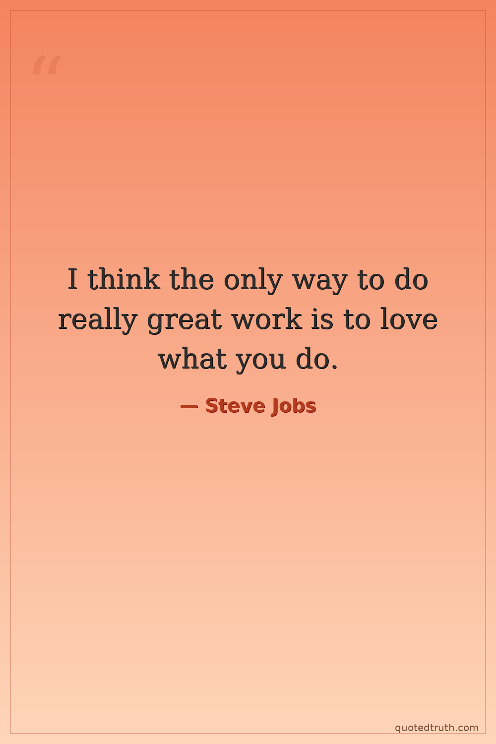 I think the only way to do really great work is to love what you do.
