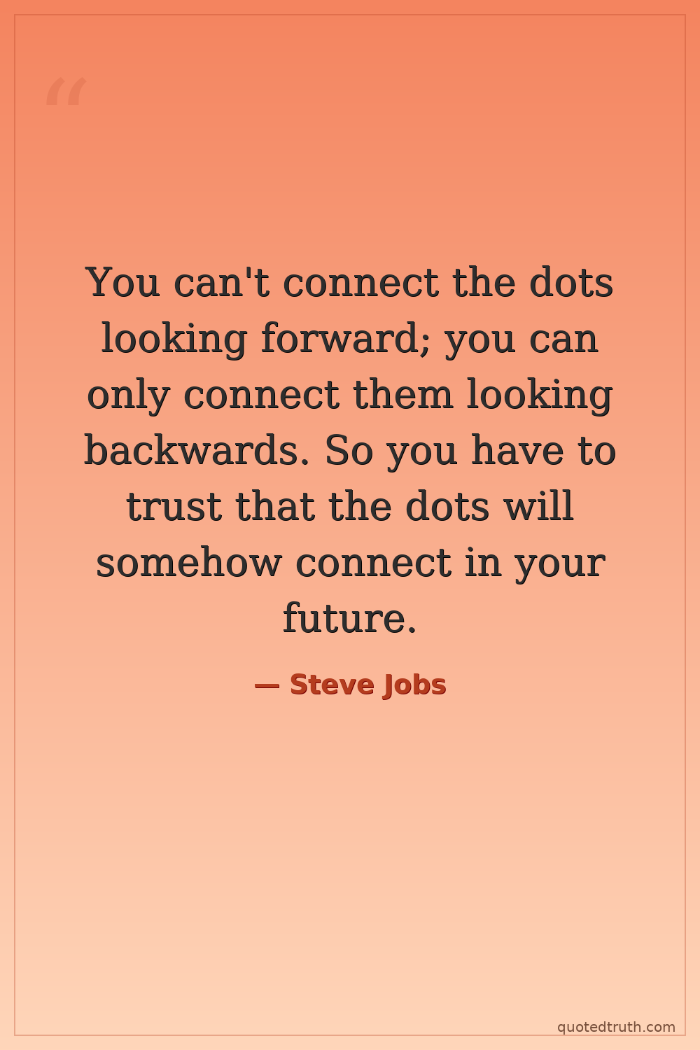 You can't connect the dots looking forward; you can only connect them looking backwards. So you have to trust that the dots will somehow connect in your future.