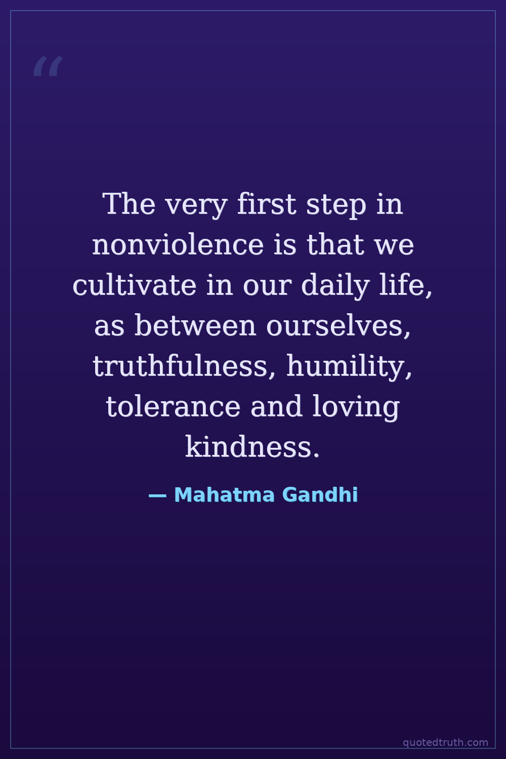 The very first step in nonviolence is that we cultivate in our daily life, as between ourselves, truthfulness, humility, tolerance and loving kindness.