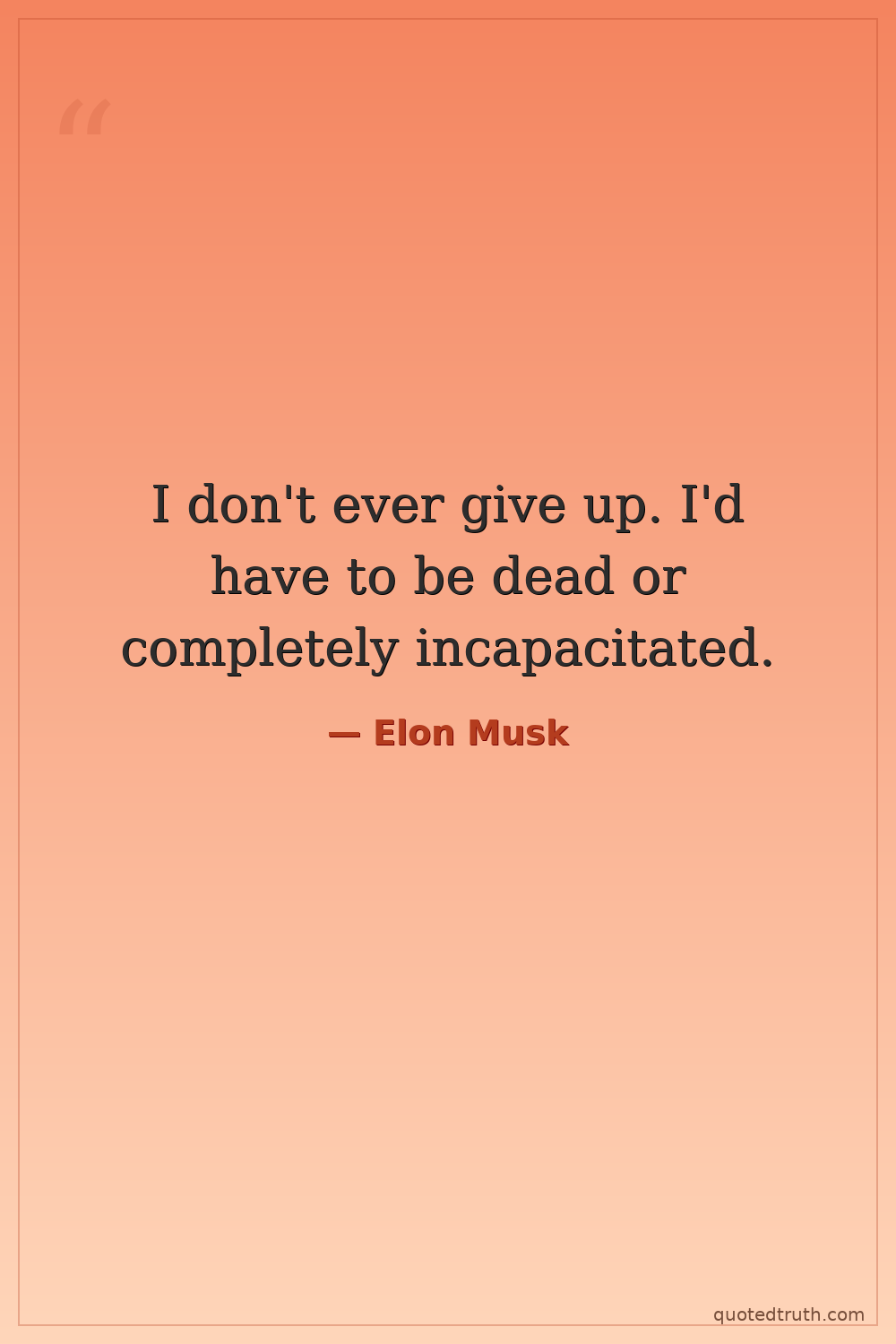I don't ever give up. I'd have to be dead or completely incapacitated.