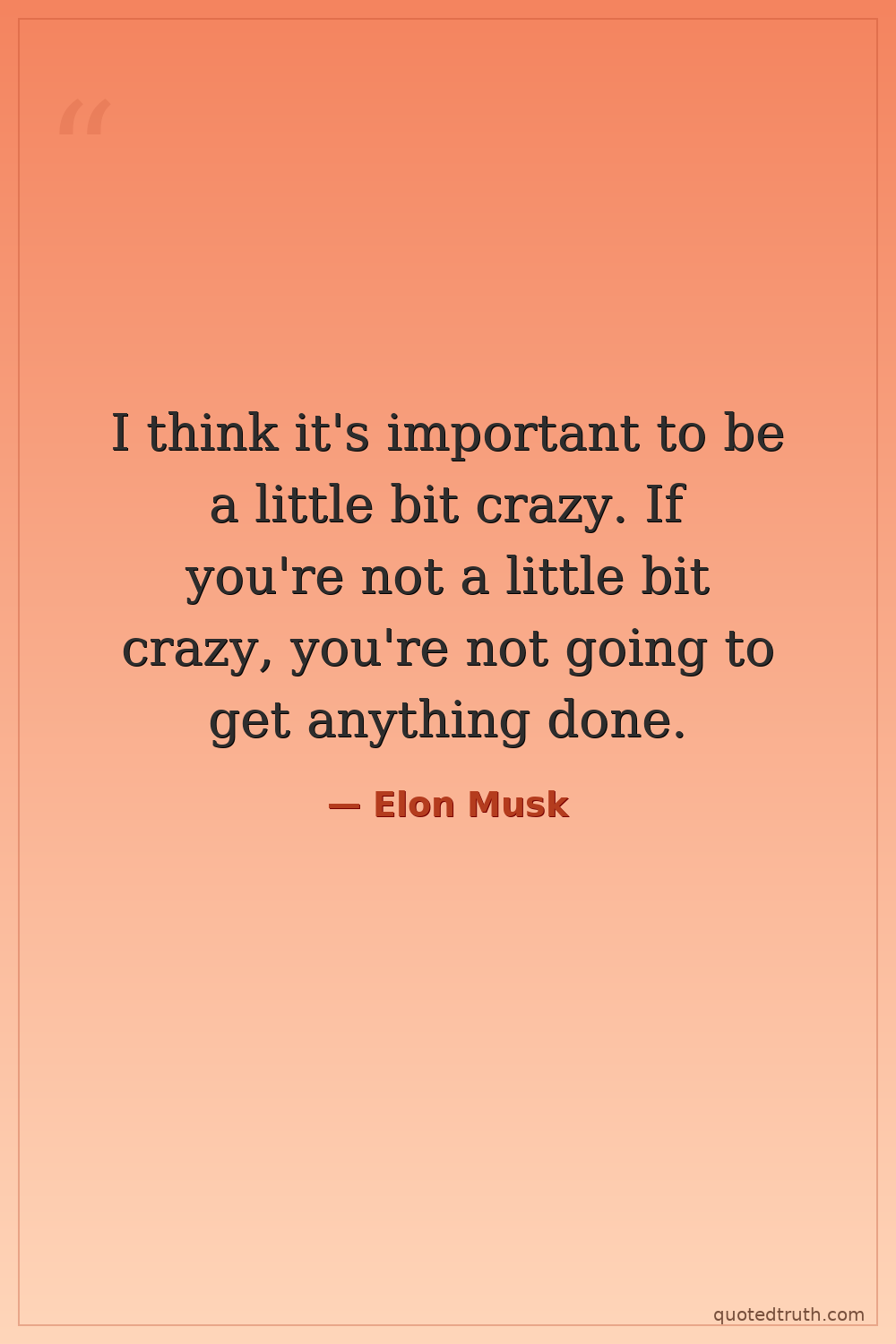 I think it's important to be a little bit crazy. If you're not a little bit crazy, you're not going to get anything done.