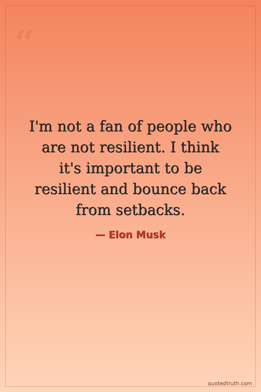 I'm not a fan of people who are not resilient. I think it's important to be resilient and bounce back from setbacks.