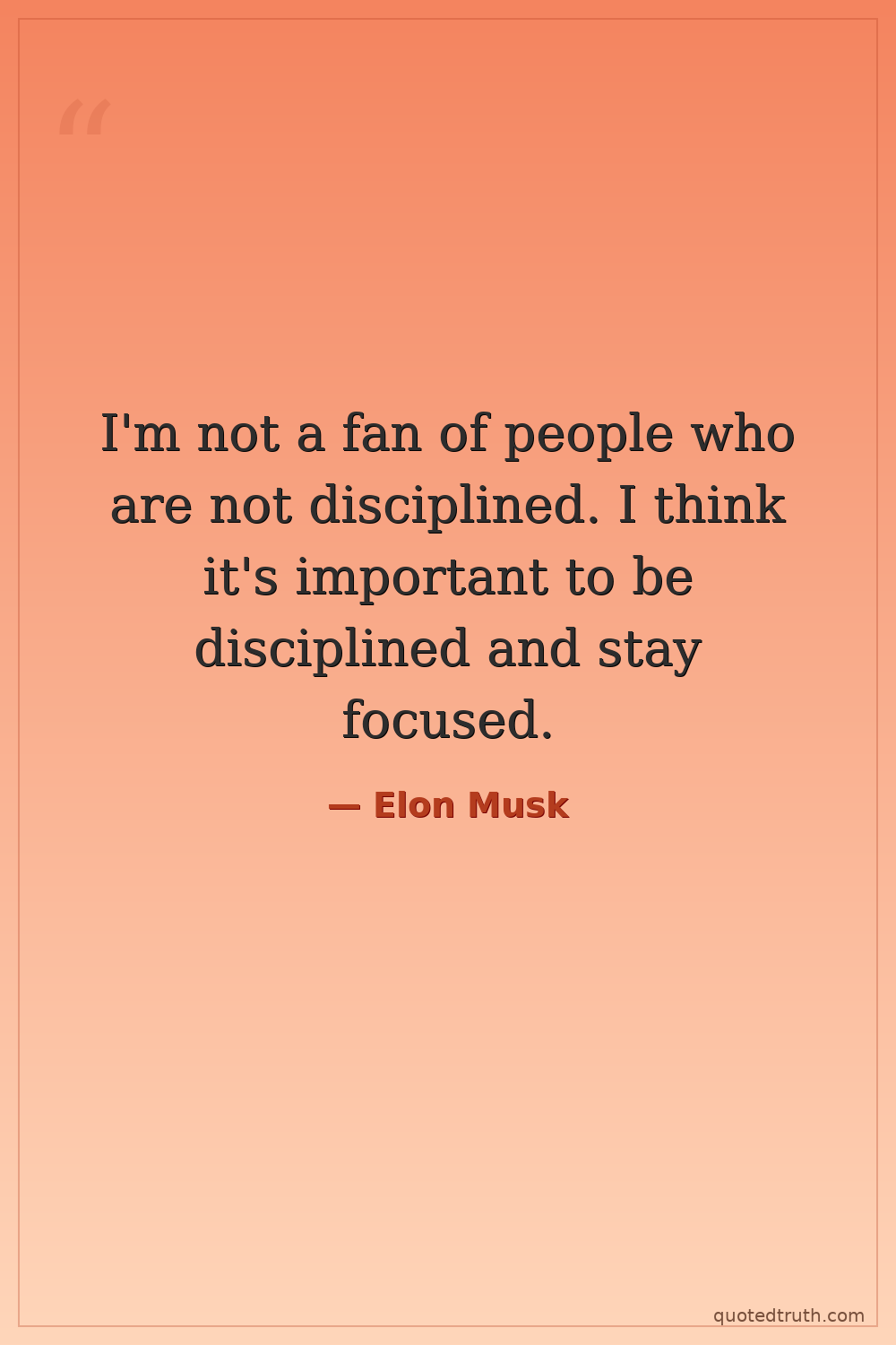 I'm not a fan of people who are not disciplined. I think it's important to be disciplined and stay focused.