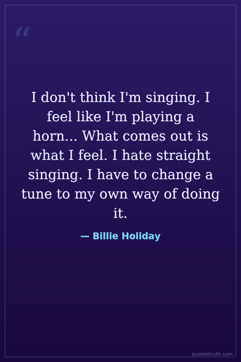 I don't think I'm singing. I feel like I'm playing a horn... What comes out is what I feel. I hate straight singing. I have to change a tune to my own way of doing it.