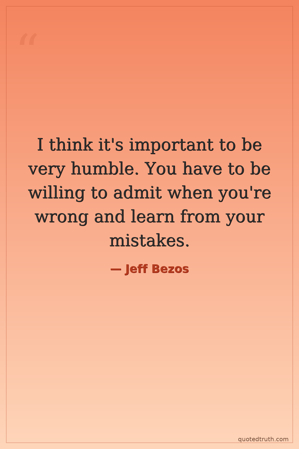 I think it's important to be very humble. You have to be willing to admit when you're wrong and learn from your mistakes.