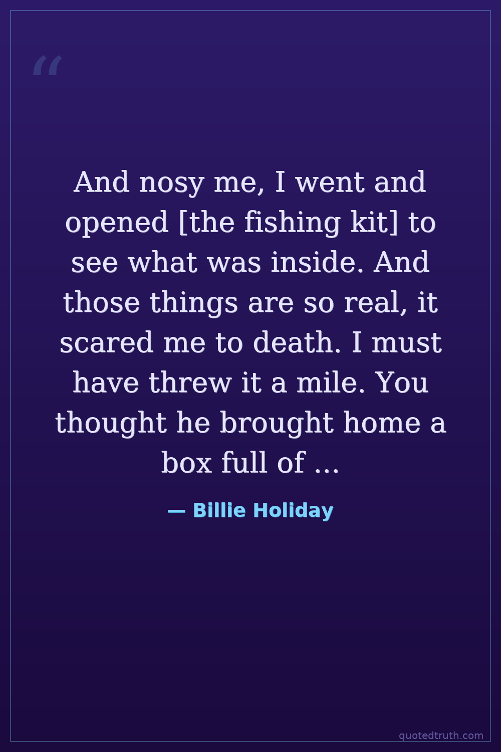 And nosy me, I went and opened [the fishing kit] to see what was inside. And those things are so real, it scared me to death. I must have threw it a mile. You thought he brought home a box full of bugs? I certainly did.