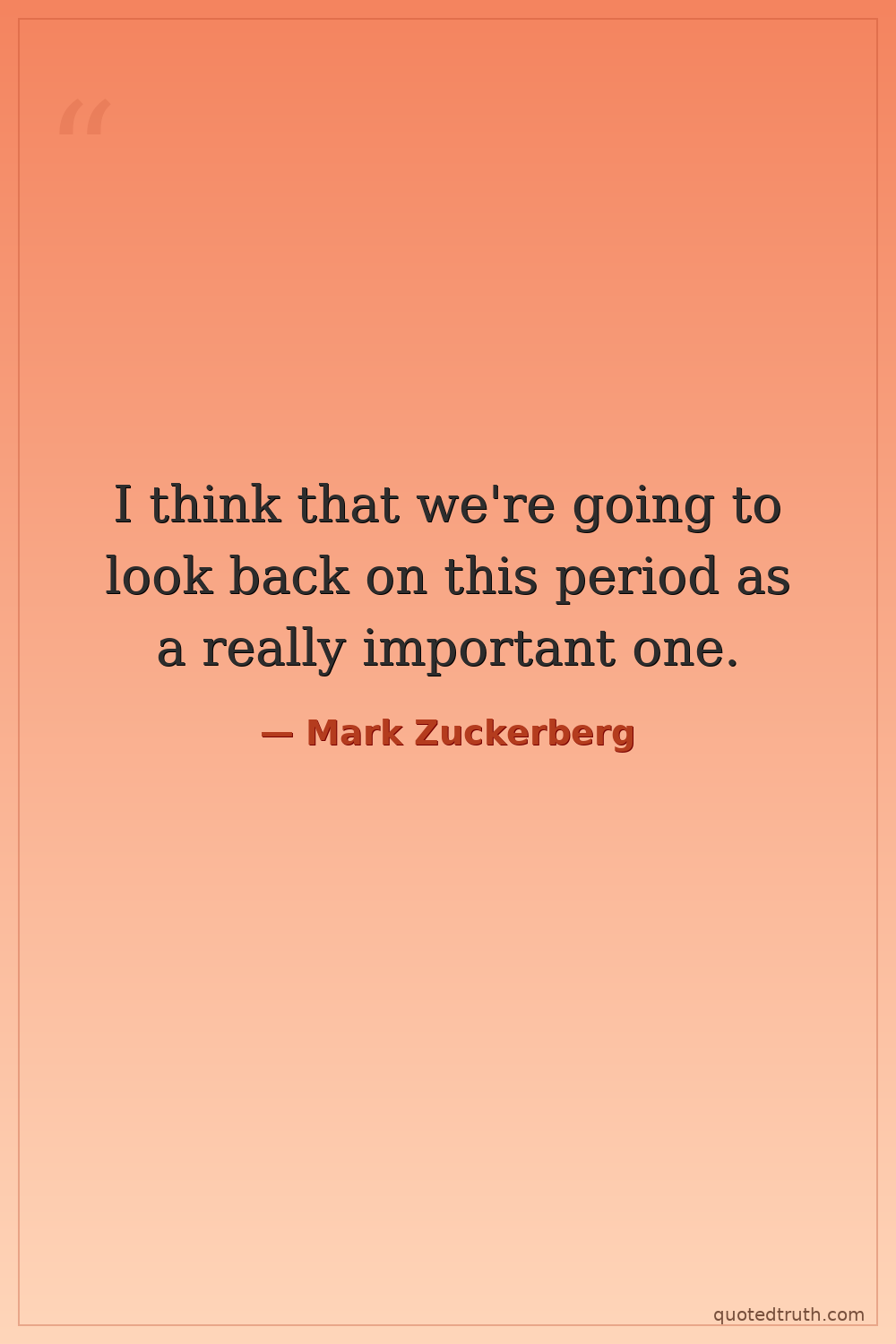 I think that we're going to look back on this period as a really important one.