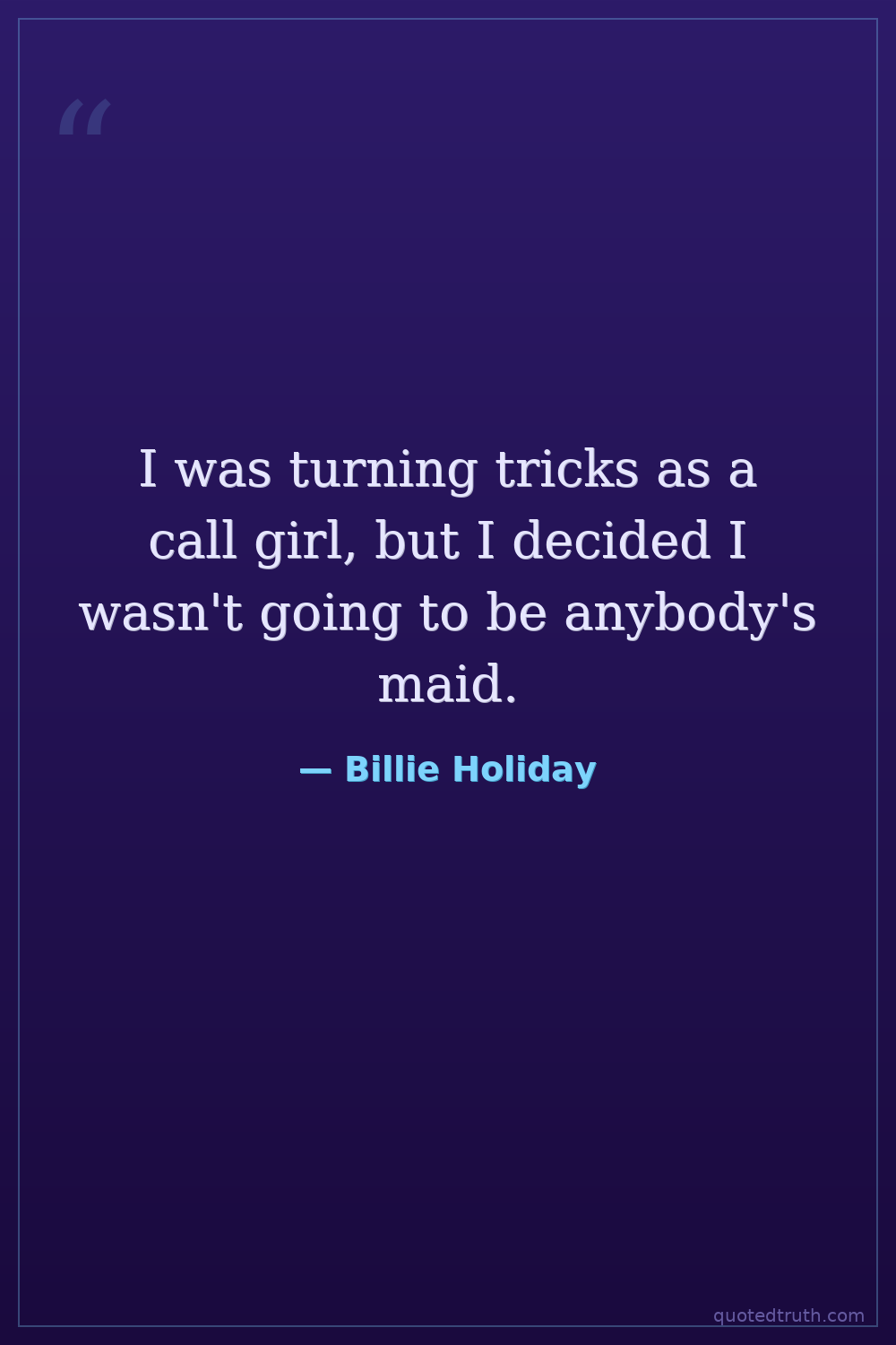 I was turning tricks as a call girl, but I decided I wasn't going to be anybody's maid.