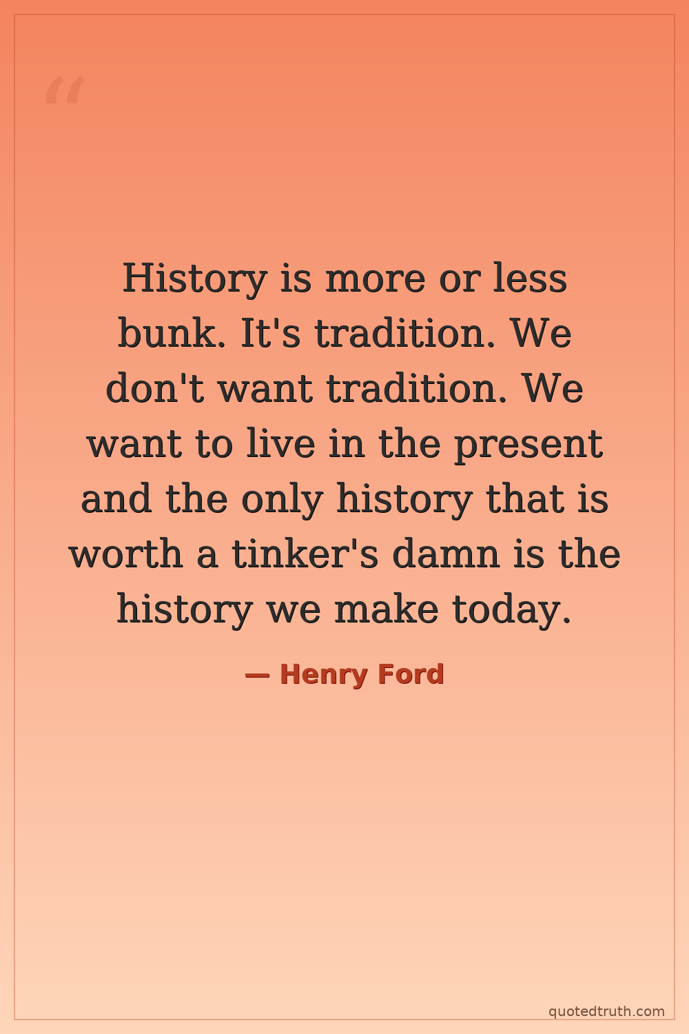 History is more or less bunk. It's tradition. We don't want tradition. We want to live in the present and the only history that is worth a tinker's damn is the history we make today.