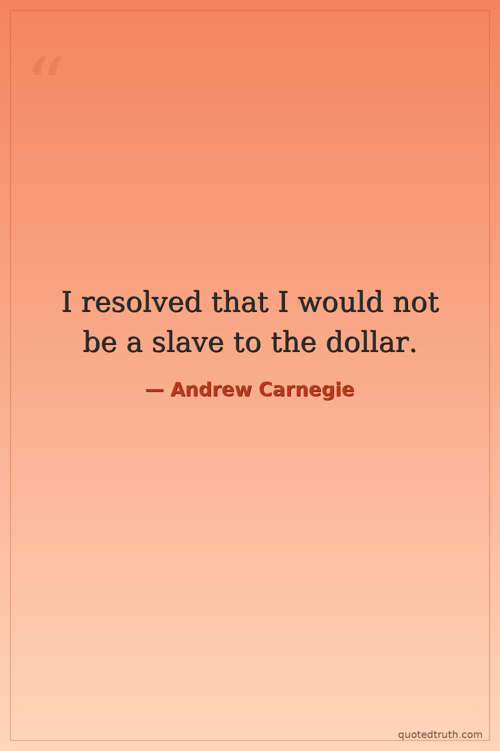 I resolved that I would not be a slave to the dollar.