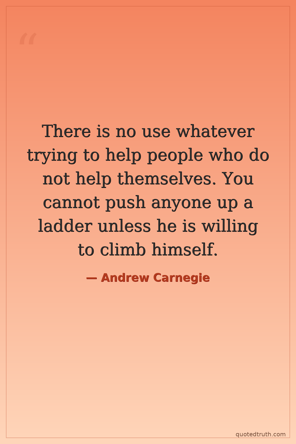 There is no use whatever trying to help people who do not help themselves. You cannot push anyone up a ladder unless he is willing to climb himself.