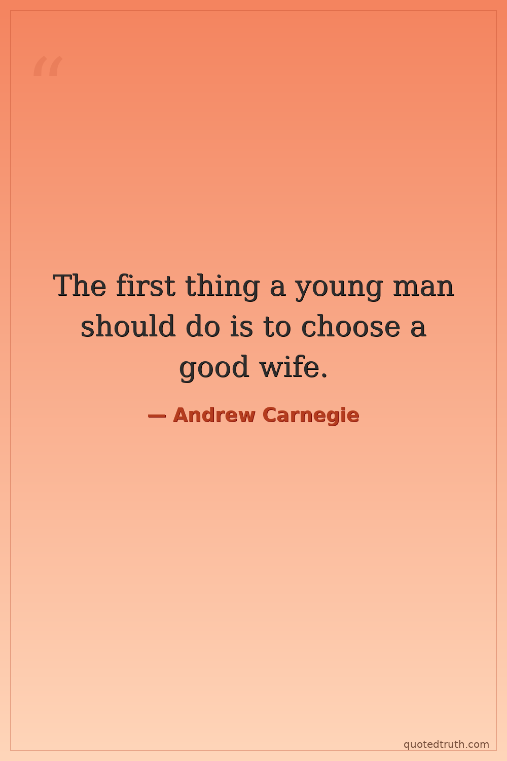 The first thing a young man should do is to choose a good wife.