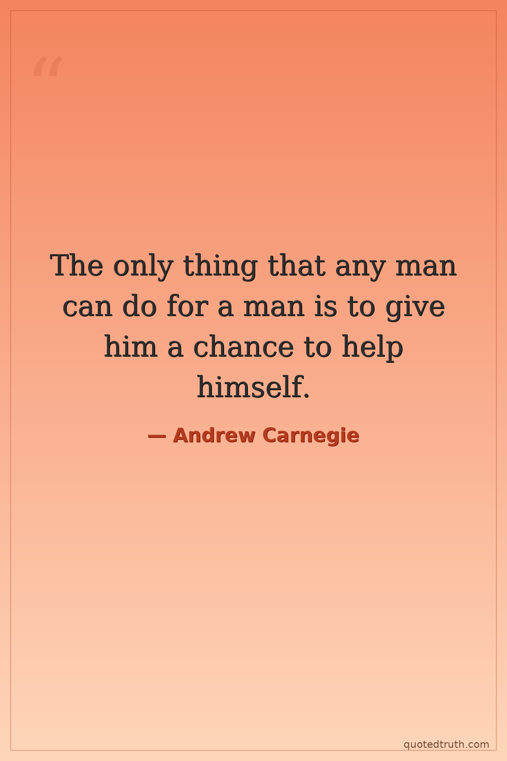 The only thing that any man can do for a man is to give him a chance to help himself.