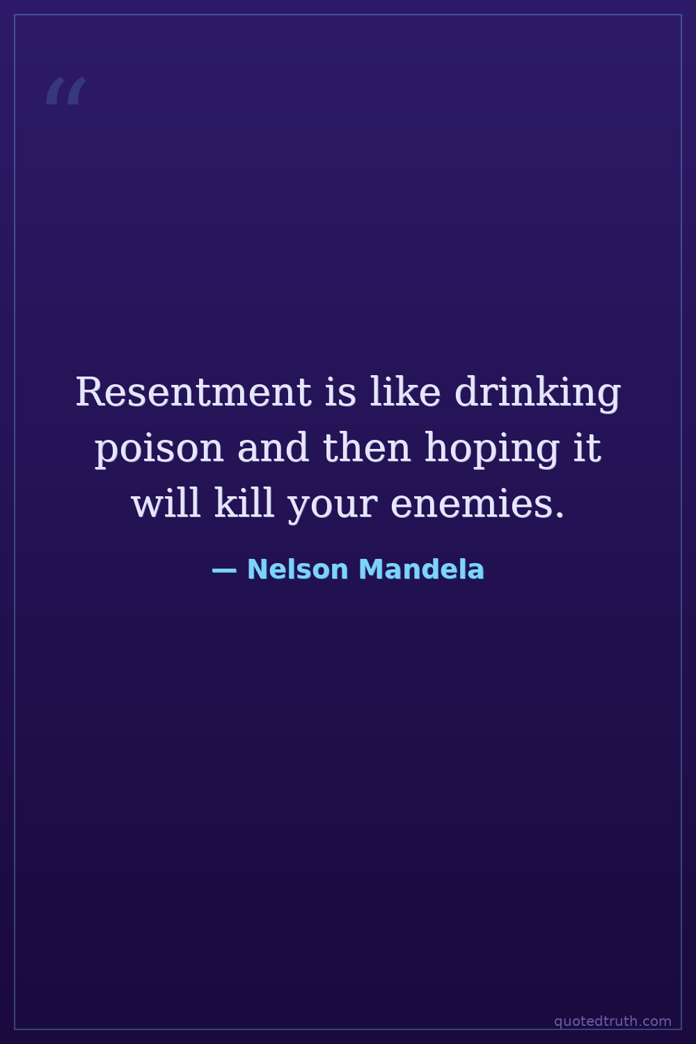 Resentment is like drinking poison and then hoping it will kill your enemies.