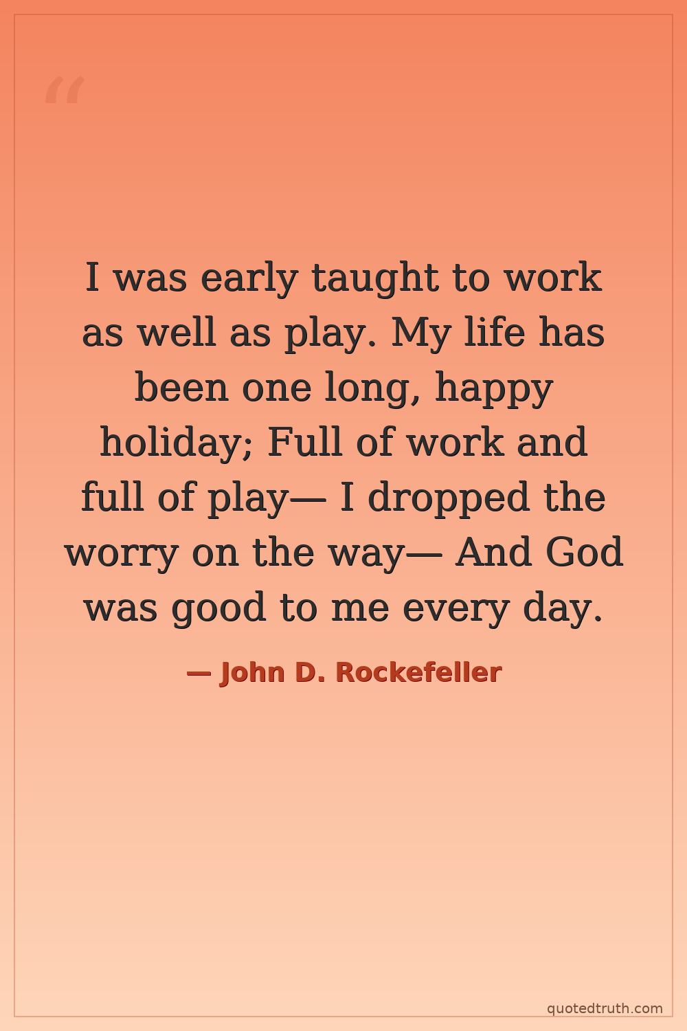 I was early taught to work as well as play. My life has been one long, happy holiday; Full of work and full of play— I dropped the worry on the way— And God was good to me every day.