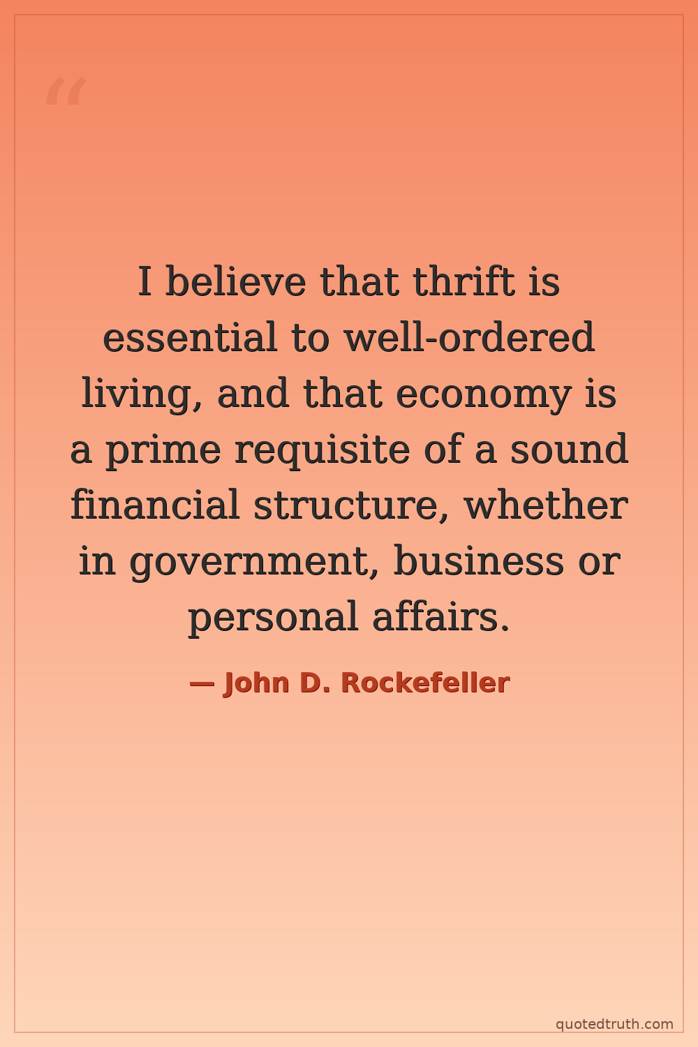I believe that thrift is essential to well-ordered living, and that economy is a prime requisite of a sound financial structure, whether in government, business or personal affairs.