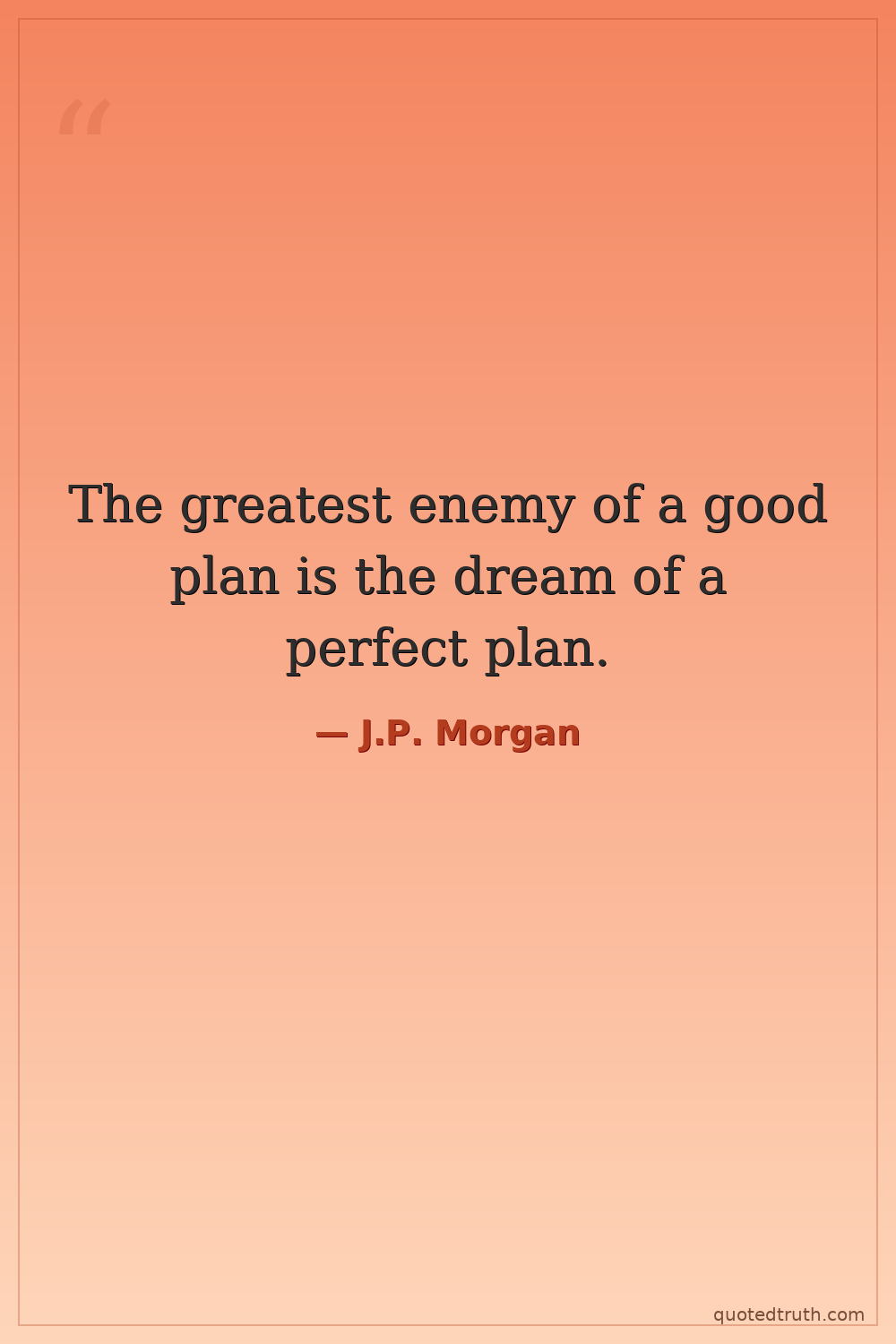 The greatest enemy of a good plan is the dream of a perfect plan.