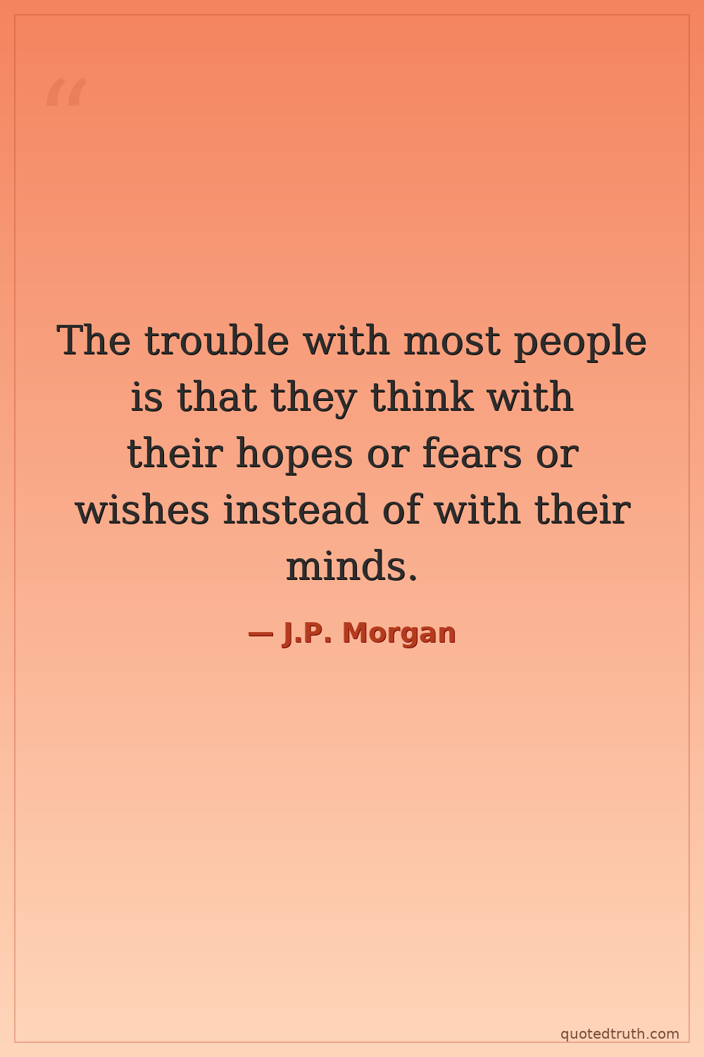 The trouble with most people is that they think with their hopes or fears or wishes instead of with their minds.