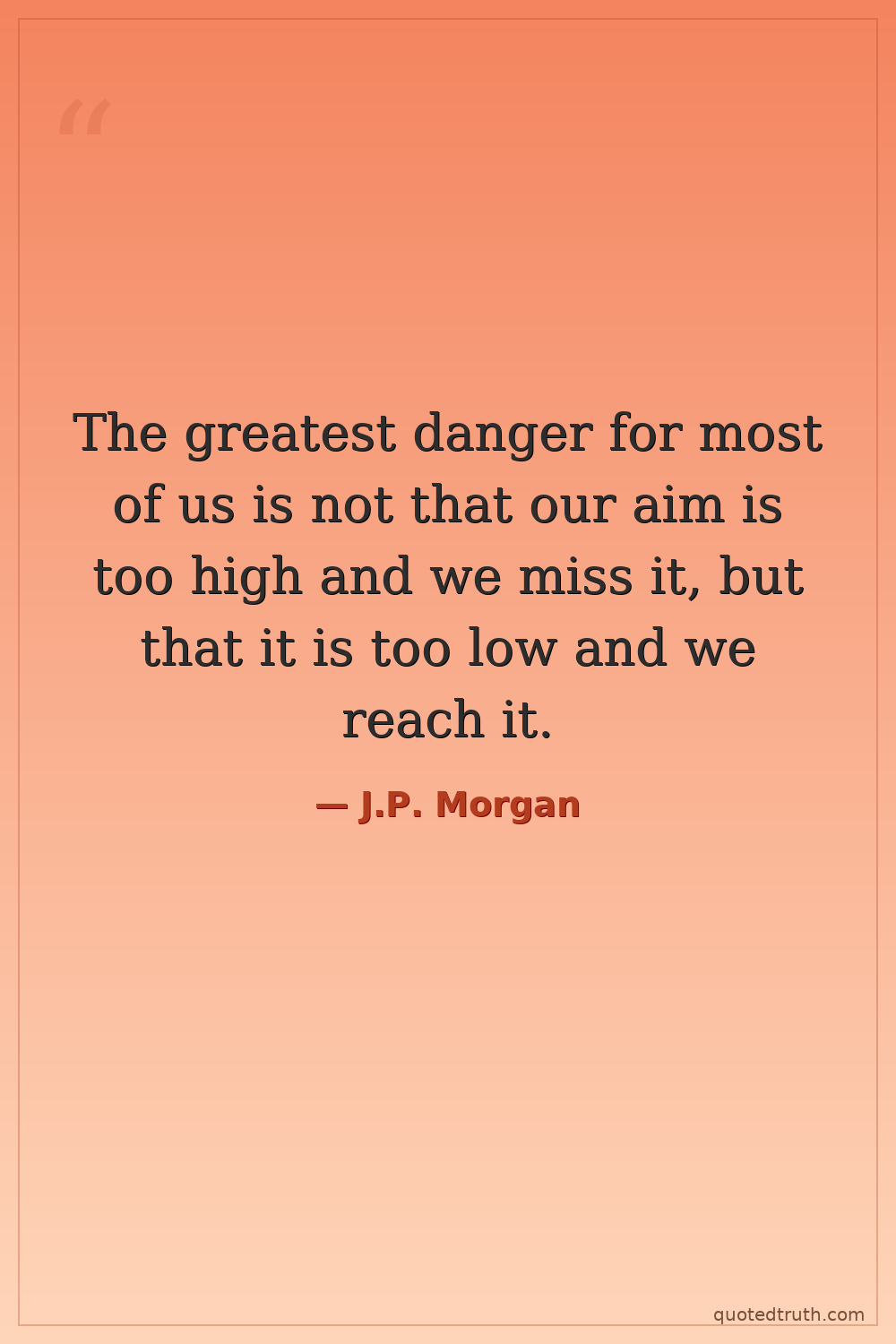 The greatest danger for most of us is not that our aim is too high and we miss it, but that it is too low and we reach it.
