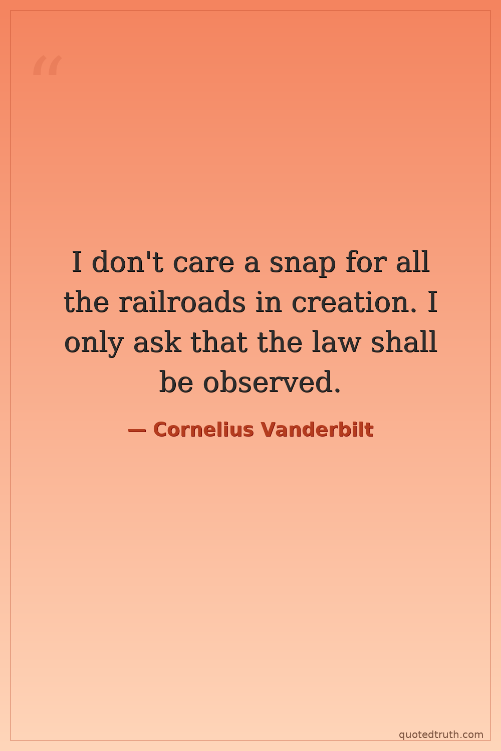 I don't care a snap for all the railroads in creation. I only ask that the law shall be observed.