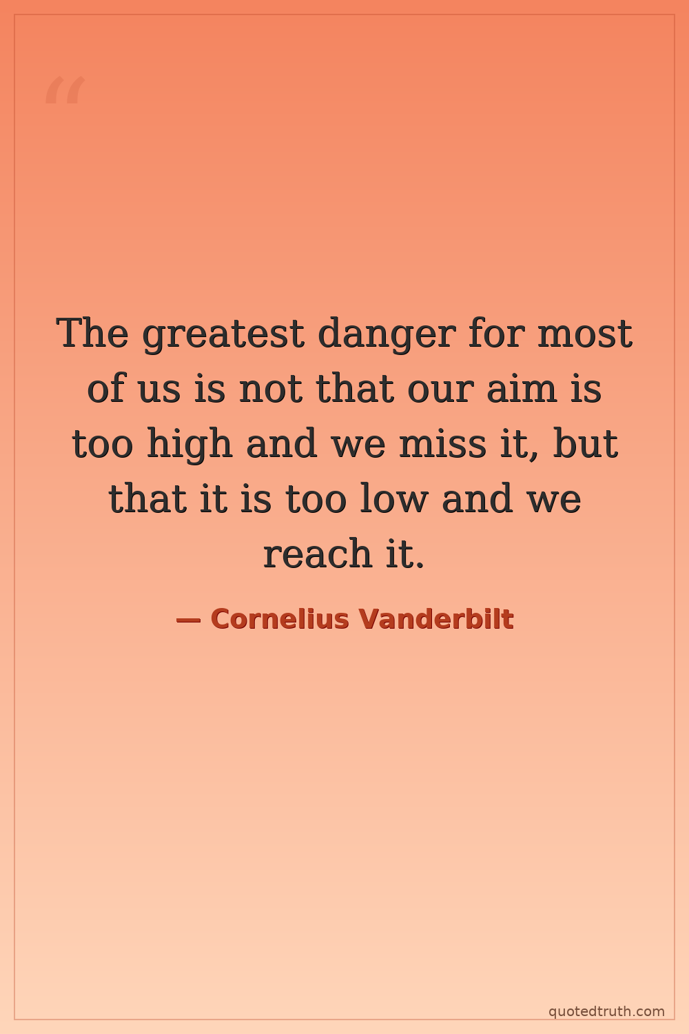 The greatest danger for most of us is not that our aim is too high and we miss it, but that it is too low and we reach it.